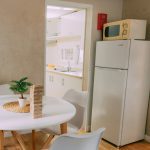 Électroménagers : Plaque 2 feux, réfrigérateur avec congélateur, micro-ondes, climatisation.